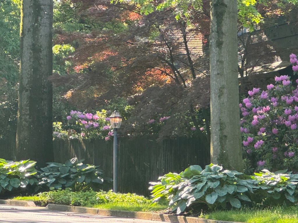 While the above caught my eye, I eventually fell in love with a cozy cottage catching a few spots of sunlight in a nook between large trees with unique bark patterns: