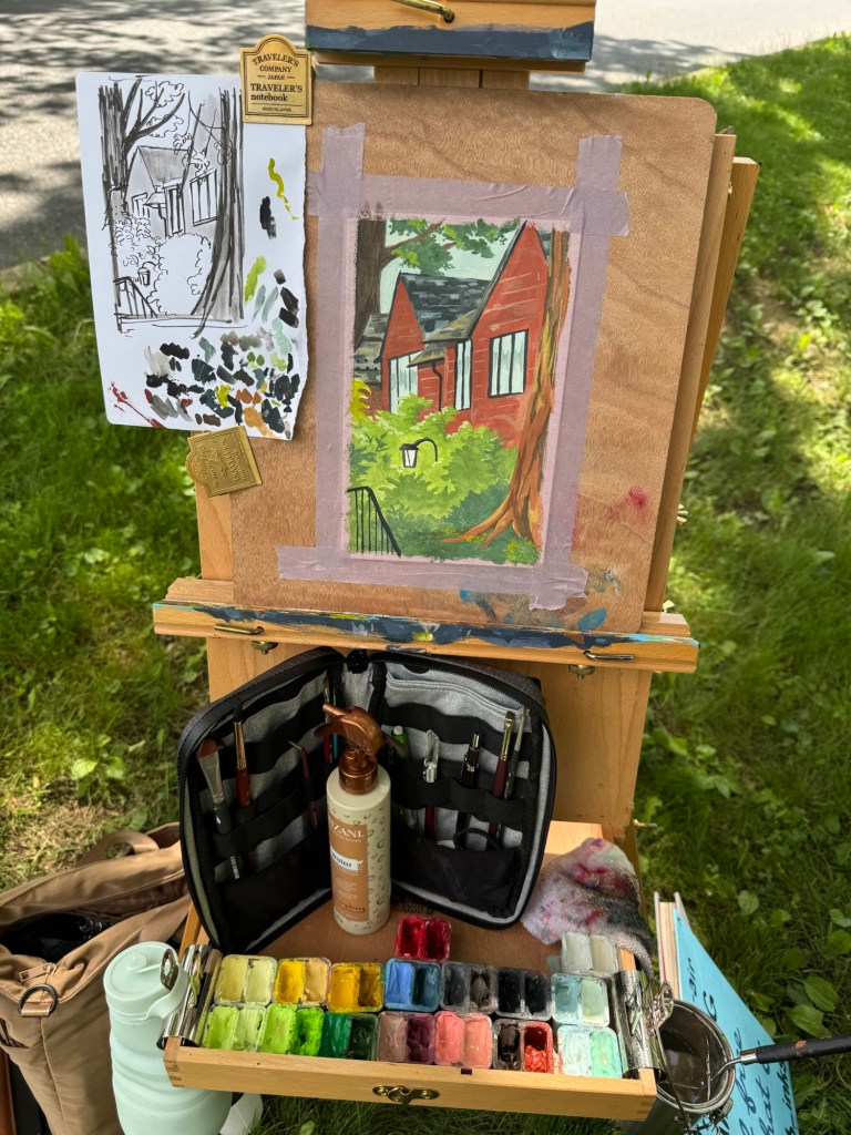 My favorite yearly plein air event has come and gone again! This is the first year that I’ve been able to paint from the park that’s central to the event (previous years I’ve been chased under businesses’ awnings by the rain). It’s a beautiful neighborhood, and so many of the gardens and architecture beg to be painted.