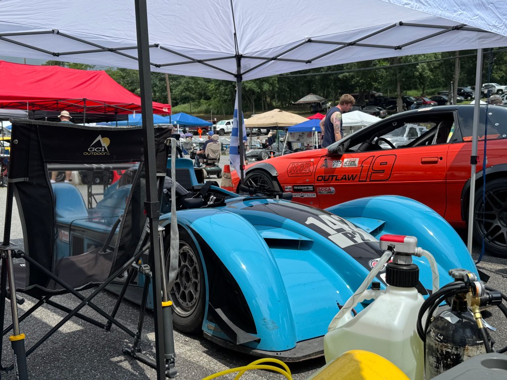 I took a sketchbook (of course!) to an amateur race this past weekend, and happened to snag a seat in the pit with a near-perfect angle on a beautiful custom-built hillclimb car!