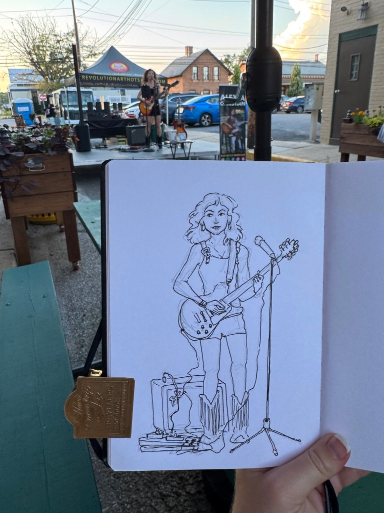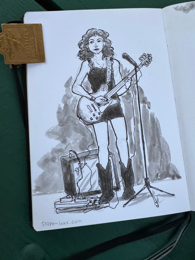 Walked into town and enjoyed a solo performance while sketching. Musicians are nice subjects because they stay sort of in place for a while 🙂